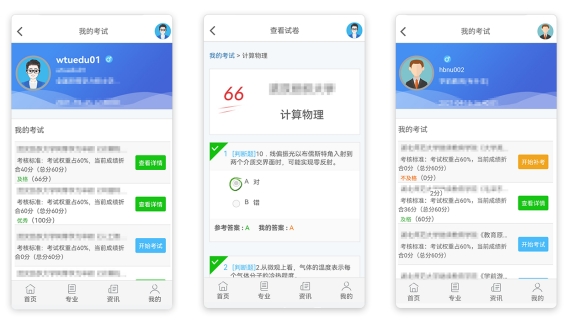 进入我的考试→可查看试卷成绩,考试不及格可以补考。【如上图所示】