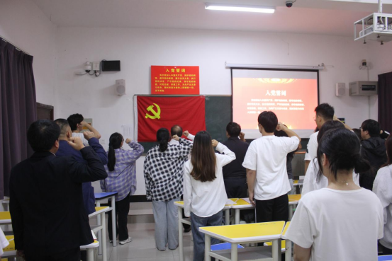 2025年9月28日,荆楚理工学院直属继续教育学院党支部,在四合院103教室举行了一场庄严而隆重的入党宣誓仪式。继续教育学院、自考助学部全体党员、学生预备党员及入党积极分子参加了宣誓仪式,仪式由直属继续教育学院支委会组织委员主持。