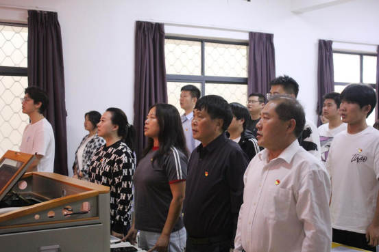宣誓仪式在雄壮的《国际歌》声中拉开帷幕。全体人员肃立,激昂的旋律回荡在会场,激发着每一位同志对党的无限忠诚与热爱。