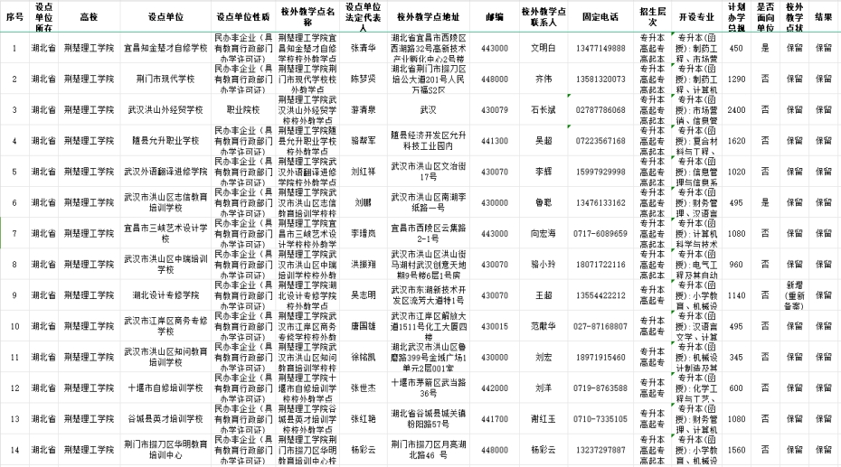 教育部公示批设 :2024年荆楚理工学院高等学历继续教育校外教学点