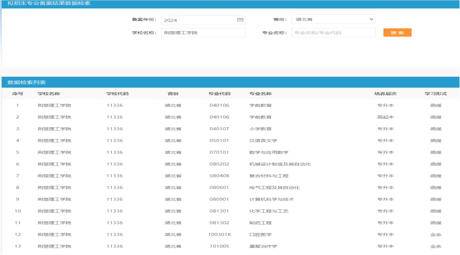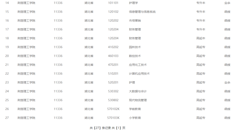 教育部公示 :2024年荆楚理工学院高等学历继续教育招生专业